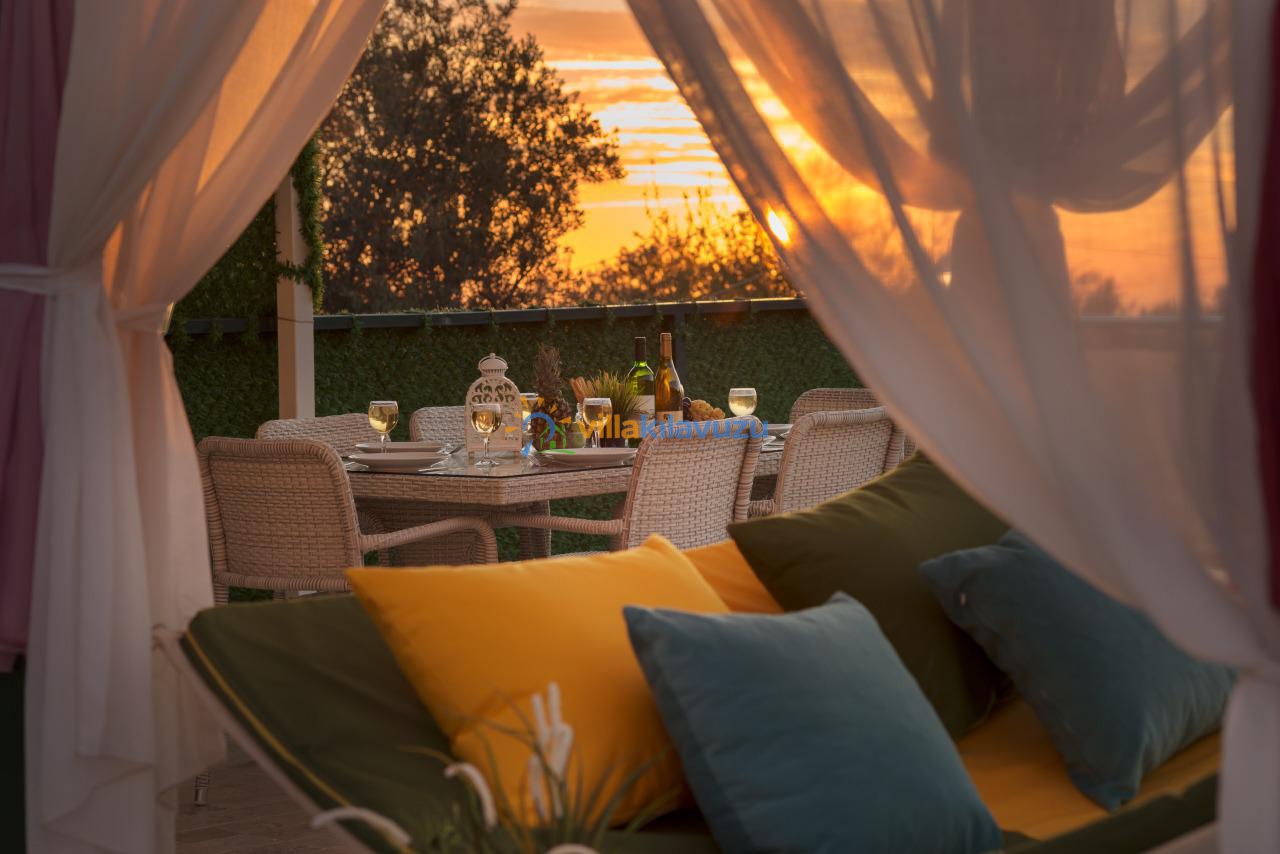 -Villamızın havuz terası korunaklıdır.