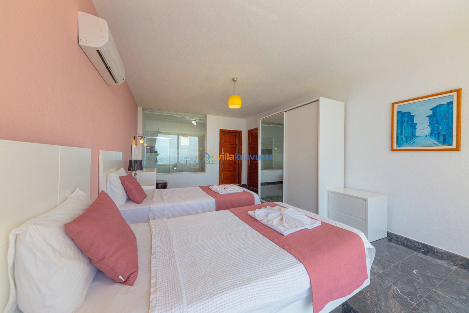 -Villamız 4 yatak odasına sahip olup 8 kişilik konaklama kapasitesine sahiptir.