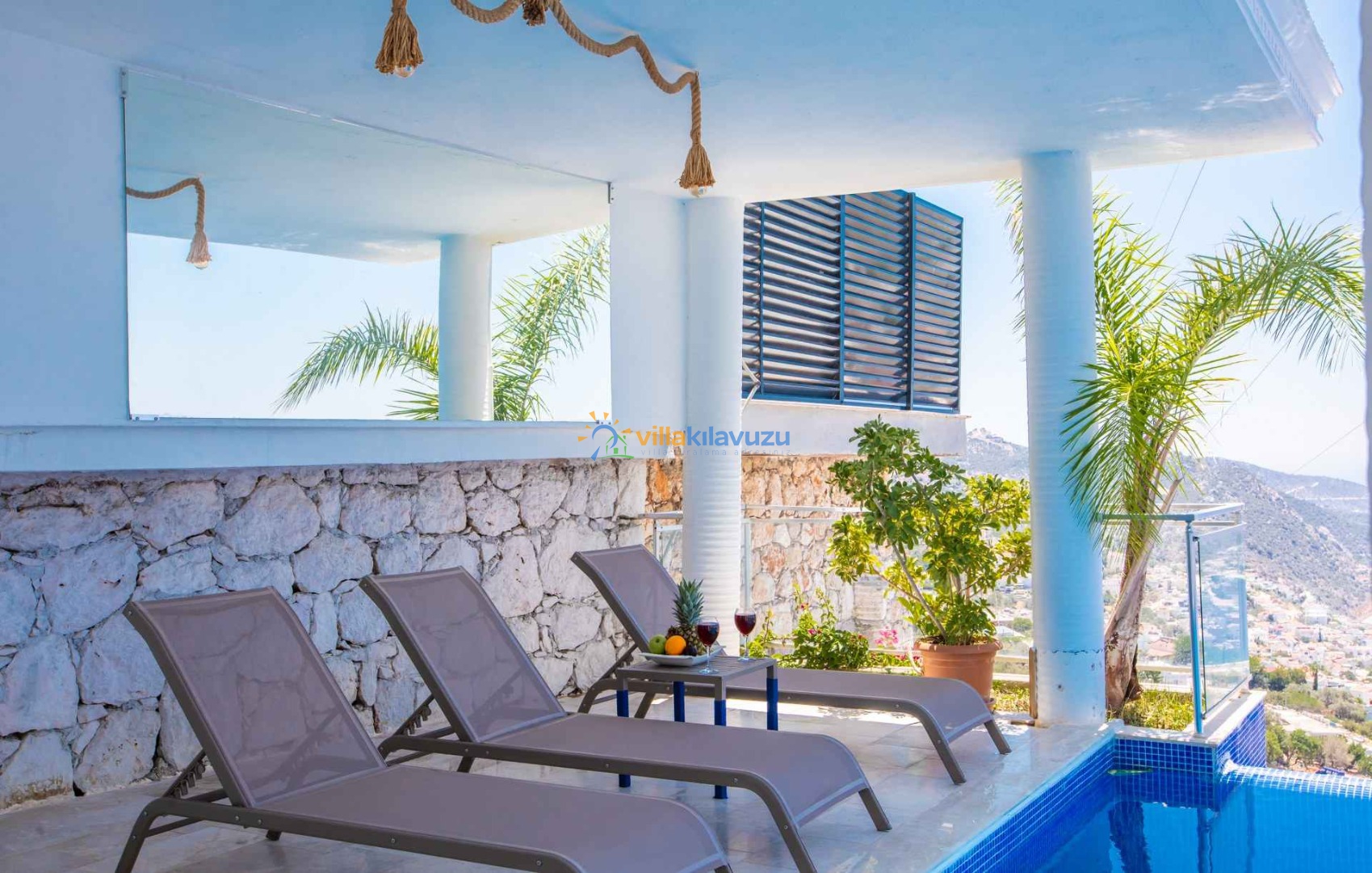 -Villamızın havuz terası korunaklıdır.